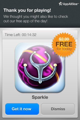 怎樣有效的將應(yīng)用貨幣化呢?簡單的說,我們首先需要判斷當(dāng)前用戶群的客戶終身價值,然后通過一系列方法使該價值得到持續(xù)的提升;這些方法包括“應(yīng)用內(nèi)”的普通廣告、產(chǎn)品體驗(yàn)廣告、來自相同發(fā)布商的其他應(yīng)用信息、相關(guān)增值產(chǎn)品與服務(wù)等。下圖所示的就是在應(yīng)用中推銷另一款產(chǎn)品的典型案例。