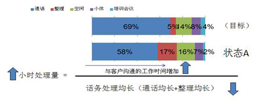 整理狀態(tài)也是CSR的生產(chǎn)時(shí)間之一,但必須有度,不能出現(xiàn)過長的情況。筆者看過某些數(shù)據(jù),平均整理時(shí)間達(dá)到50秒以上。當(dāng)發(fā)生這樣的情況,必須作出切底的摸查,通過流程改善、系統(tǒng)優(yōu)化、操作優(yōu)化等方式減少CSR在話后工作的操作難度,提升話后工作效率。在行業(yè)中一般整理率控制5%~10%(視話后工作要求而定)。
