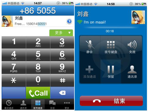 注冊很輕松。當(dāng)你第一次啟動軟件時你將用你的手機號碼登錄,屆時你將收到一條帶有用來激活的驗證碼信息。和包括Viber的一些網(wǎng)絡(luò)電話相似,它會用你的手機號碼作為主叫ID,所以當(dāng)你使用maaii撥打網(wǎng)絡(luò)電話時,你的聯(lián)系人手機上顯示的將是你注冊的手機號碼。