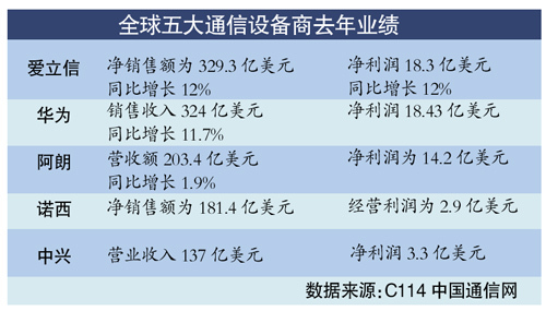 至此,全球五大通信廠商都發(fā)布了去年業(yè)績(jī),全球通信前5強(qiáng)中,中國(guó)已占2席。不久前,中興通訊(微博)總裁史立榮在IT領(lǐng)袖峰會(huì)上表示,全球電信設(shè)備領(lǐng)域基本上已經(jīng)進(jìn)入了一個(gè)寡頭時(shí)代,這是技術(shù)投入加大形成高門檻的結(jié)果。