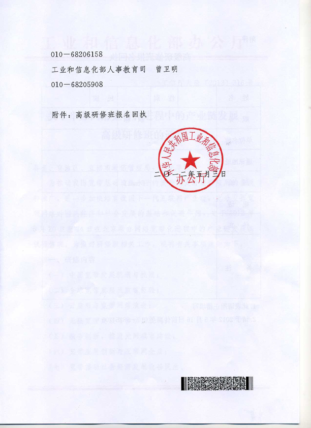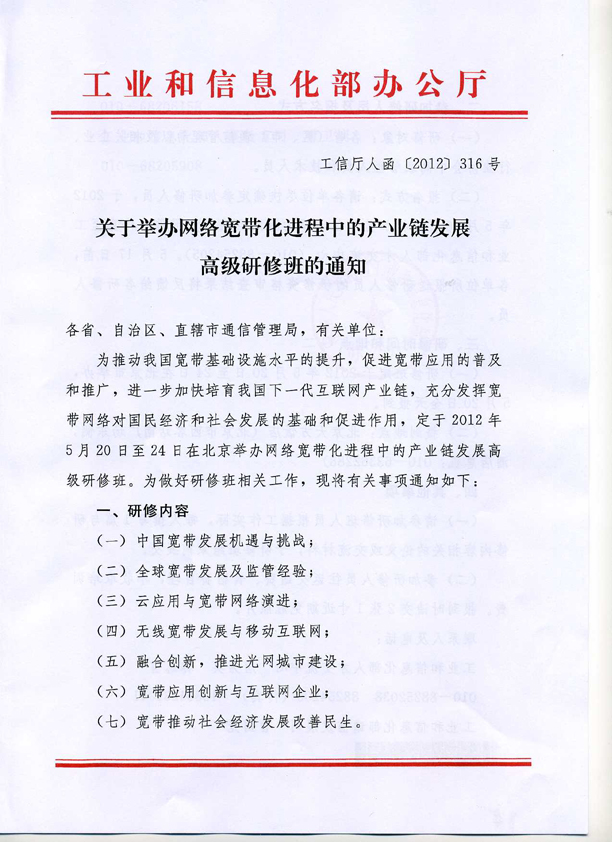 工信部:網絡寬帶化進程中的產業(yè)鏈發(fā)展高級研修班