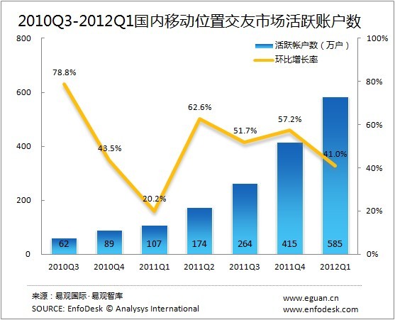 易觀:2012Q1國內(nèi)移動位置交友應(yīng)用規(guī)模達4338萬戶