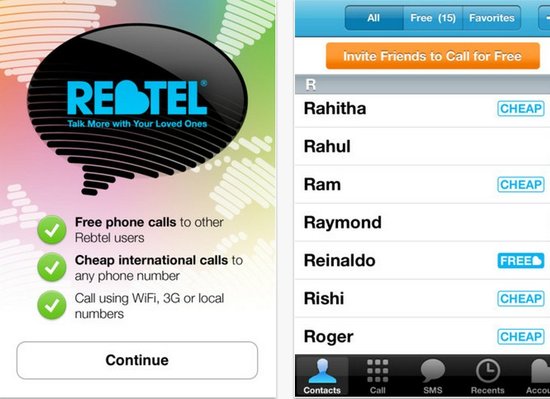 這款iPad版應(yīng)用允許用戶基于WiFi和3G連接方式向其他Rebtel用戶發(fā)起免費(fèi)的語(yǔ)音電話,或者基于通訊簿的電話號(hào)碼向非Rebtel用戶撥打只需很低資費(fèi)的電話,其CEO安德烈·伯格斯特龍(Andreas Bernstrom)表示,其撥打費(fèi)用比Skype的資費(fèi)便宜60%左右。