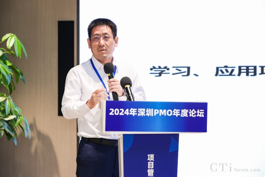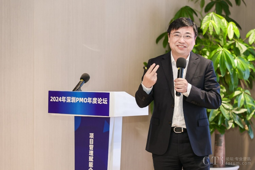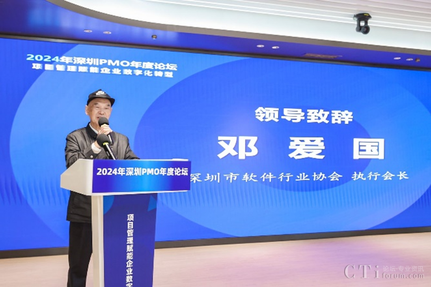 深圳市軟件行業(yè)協(xié)會(huì)執(zhí)行會(huì)長(zhǎng)鄧愛國(guó)發(fā)表了熱情洋溢的致辭。他強(qiáng)調(diào)了PMO在數(shù)字化轉(zhuǎn)型中的關(guān)鍵作用,并表達(dá)了對(duì)與會(huì)者們的熱烈歡迎和對(duì)論壇的殷切期望。他表示,PMO是項(xiàng)目管理中的重要角色,承擔(dān)著承上啟下的作用,對(duì)于企業(yè)數(shù)字化轉(zhuǎn)型的成功至關(guān)重要。