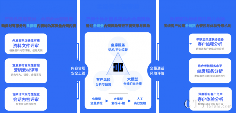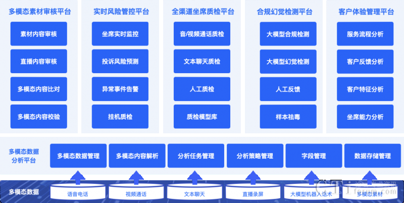 依托多項(xiàng)AI能力融合應(yīng)用,升級后的【多模態(tài)合規(guī)分析平臺】能處理對話數(shù)據(jù)、圖片、音頻和視頻等各種格式的信息,同時采用大小模型組合式AI合規(guī)檢查機(jī)制,對各個渠道的客戶互動數(shù)據(jù)進(jìn)行聚合分析,實(shí)現(xiàn)大模型構(gòu)成坐席和客戶間全場景多模態(tài)數(shù)據(jù)檢測與分析,以及客戶體驗(yàn)升級。