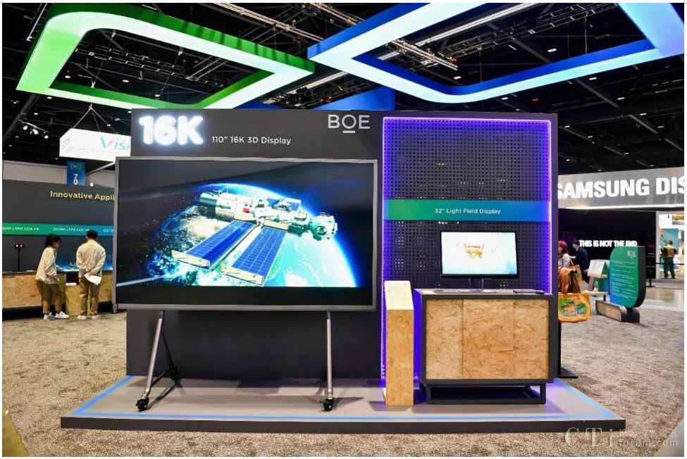 本次SID,BOE(京東方)攜三大技術(shù)品牌重磅首發(fā)的多款行業(yè)領(lǐng)先顯示技術(shù)和產(chǎn)品驚艷亮相。步入展區(qū),首先映入眼簾的是BOE(京東方)重磅首發(fā)的全球首款16K 110英寸超大尺寸裸眼3D顯示屏,并以超高清、超高分辨率、多視點(diǎn)、廣色域等優(yōu)勢(shì)突破了顯示行業(yè)的創(chuàng)新高度,該產(chǎn)品搭載高色域Mini LED背光技術(shù)以及BOE(京東方)自主研發(fā)的16K交織排圖算法,3D視角擴(kuò)大至60°,廣泛應(yīng)用于廣告、會(huì)議、教育等多元化場(chǎng)景。