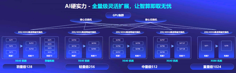 隨著算力成為稀缺資源,寧暢從客戶角度出發(fā),提供了“先享后付”的算力購(gòu)買方案。目前,寧暢AI算力棧已開放免費(fèi)試用,現(xiàn)已有50+用戶預(yù)約試用。該算力棧是一個(gè)包括128臺(tái)GPU服務(wù)器的千卡級(jí)別算力集群,標(biāo)準(zhǔn)化智算中心建設(shè)方案囊括了羽量級(jí)128、輕量級(jí)256、中量級(jí)512、重量級(jí)1024四個(gè)等級(jí),實(shí)現(xiàn)全量級(jí)靈活擴(kuò)展,給了用戶極大選擇空間。用戶可在試用中嘗試不同的業(yè)務(wù)組合、方案框架,以便找到“最優(yōu)性價(jià)比”的智算中心建設(shè)方案。