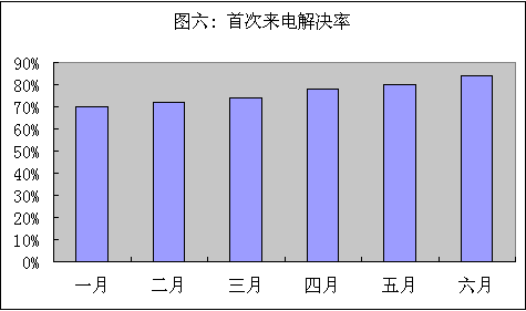 圖六反映了本例首次來電和解決率及平均解決時(shí)間。我們可以看到總體趨勢(shì)管理良性發(fā)展。