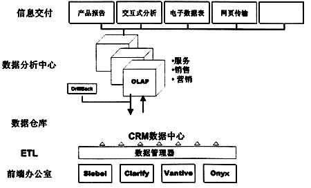 根據(jù)Hyperion的定義,CRM可以分為幾類,目前比較常見的是運營型CRM——前端辦公室與客戶間各種接觸點的垂直集成,包括通過多種連接方式的交付在內(nèi)的銷售、市場和服務,以及前、后端辦公室的無縫集成。Hyperion認為這些僅僅是CRM的初級功能,CRM的真正意義在于它能夠在運行過程中對相關(guān)數(shù)據(jù)進行分析,并提出智能化的建議,即分析型CRM。