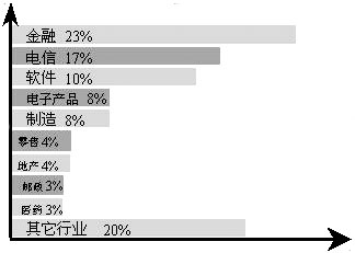 CRM的應(yīng)用已經(jīng)覆蓋了幾乎所有的行業(yè),典型行業(yè)客戶(hù)應(yīng)用案例和效果為其他企業(yè)采取行動(dòng)提供了樣板。這些行業(yè)包括銀行、保險(xiǎn)、證券、基金、電信、郵政、制造、醫(yī)藥、零售、地產(chǎn)、IT、傳媒、交通和物流等。在整個(gè)市場(chǎng)中,主要行業(yè)的占有率情況參見(jiàn)下圖:
