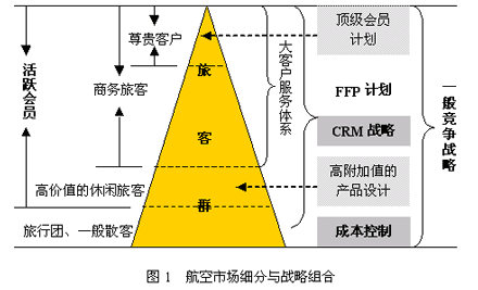 國內主要航空公司都進一步明確了市場細分與戰(zhàn)略組合的關系,凸現(xiàn)“以客戶為中心”的經(jīng)營理念,如圖1所示。