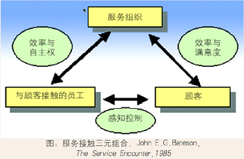 服務(wù)接觸的“三元”結(jié)構(gòu),指出了一種值得追求的狀態(tài):服務(wù)組織、與顧客接觸的員工和顧客這三個(gè)要素之間,必須通過協(xié)調(diào)一致地對“服務(wù)質(zhì)量”、“服務(wù)滿意”的認(rèn)知,實(shí)踐服務(wù)組織和顧客之間的價(jià)值流動(dòng)。倘若員工拘泥于服務(wù)組織的“規(guī)定”,對顧客的服務(wù)需求做出“遲鈍的”,甚至“消極的”反應(yīng),那么“顧客參與”所獲得的服務(wù)體驗(yàn),將直接損害服務(wù)商的信譽(yù),同時(shí)也損害顧客的利益。