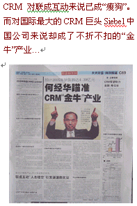 而此前Siebel在中國市場一直采取"大鯨不游淺水"策略,保持低調,冷眼旁觀,并未投入大量人力財力在中國市場,此次巨資籠絡何經(jīng)華,是否Siebel認為中國CRM這個"淺池子"開始加深了?