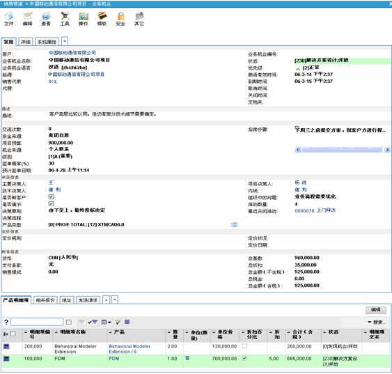 具體來(lái)講,企業(yè)的銷售人員通過(guò)VamCRM定義的銷售管道實(shí)現(xiàn)對(duì)銷售工作的流程化跟進(jìn)和管理;玖鞒淌牵菏紫蠕N售人員通過(guò)各種途徑獲得客戶信息,與之溝通聯(lián)系,有業(yè)務(wù)進(jìn)一步發(fā)展的可能后形成相應(yīng)的銷售線索,便開始切入銷售管道。然后,通過(guò)相關(guān)業(yè)務(wù)活動(dòng)與客戶進(jìn)行接觸,支持業(yè)務(wù)的不斷發(fā)展,隨后,形成業(yè)務(wù)機(jī)會(huì)。若該項(xiàng)業(yè)務(wù)進(jìn)入實(shí)質(zhì)性的需求分析及合同的前期談判階段,即升級(jí)為系統(tǒng)的報(bào)價(jià)階段,可以對(duì)客戶的需求進(jìn)行報(bào)價(jià)、出具解決方案。接著,開展一系列商務(wù)公關(guān)活動(dòng),以雙方都可接受的實(shí)現(xiàn)方式簽訂合同,即在系統(tǒng)里形成銷售訂單。最終促進(jìn)形成發(fā)貨單,進(jìn)入實(shí)施、合同執(zhí)行、收款等相關(guān)后續(xù)的環(huán)節(jié)。與此同時(shí),所有與現(xiàn)實(shí)中同客戶合約相關(guān)的信息都可以以統(tǒng)一的形式在系統(tǒng)中存儲(chǔ),并且可以在獨(dú)立銷售階段間輕松遞進(jìn)轉(zhuǎn)換,有效提高系統(tǒng)的易用性和信息統(tǒng)一的關(guān)聯(lián)程度。每一個(gè)銷售階段都隱含著不同的側(cè)重目標(biāo),從線索挖掘、銷售過(guò)程追蹤、直至交易達(dá)成,企業(yè)可以對(duì)銷售過(guò)程進(jìn)行全面過(guò)程化管理,并且各個(gè)流程之間信息高度關(guān)聯(lián)和集成統(tǒng)一。同時(shí),VamCRM融合了經(jīng)眾多企業(yè)多年實(shí)踐證明非常有效的MEDDIC銷售方法,不但能夠使銷售流程更加順暢,更能夠幫助企業(yè)深度把握客戶需求,掌握客戶購(gòu)買習(xí)慣,明顯提升銷售業(yè)績(jī)。