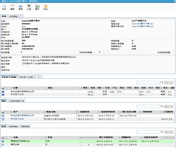 VamCRM的營(yíng)銷戰(zhàn)役,可以自動(dòng)統(tǒng)計(jì)有多少線索成功轉(zhuǎn)化為業(yè)務(wù)機(jī)會(huì),有多少線索最終簽單,從而使得企業(yè)相關(guān)管理人員可以對(duì)營(yíng)銷戰(zhàn)役的效果得到直觀的量化評(píng)估,對(duì)市場(chǎng)活動(dòng)的投資收益做到心中有數(shù)。