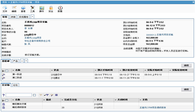VamCRM提供專業(yè)的項(xiàng)目管理模塊,支持項(xiàng)目范圍管理、時(shí)間管理、資源管理、質(zhì)量管理、成本管理。支持以銷售合約為驅(qū)動(dòng)、過(guò)程清晰、全程受控的項(xiàng)目管理方式為客戶交付產(chǎn)品和服務(wù)。VamCRM融入成熟的項(xiàng)目管理方法和成功的實(shí)踐經(jīng)驗(yàn),從整體上對(duì)項(xiàng)目進(jìn)行規(guī)劃、組織、執(zhí)行、控制,使企業(yè)可以更加優(yōu)質(zhì)地為客戶提供長(zhǎng)期的服務(wù)。項(xiàng)目創(chuàng)建后,VamCRM系統(tǒng)會(huì)自動(dòng)生成一個(gè)與當(dāng)前項(xiàng)目相匹配的文件夾,為項(xiàng)目執(zhí)行過(guò)程中產(chǎn)生的交付物或項(xiàng)目的有關(guān)文檔提供統(tǒng)一的存檔位置;項(xiàng)目全程融合項(xiàng)目管理的方法,分里程碑管理項(xiàng)目活動(dòng)和交付物,實(shí)時(shí)統(tǒng)計(jì)項(xiàng)目的關(guān)鍵數(shù)據(jù),并且里程碑及所屬活動(dòng)和交付物等都可分狀態(tài)量化標(biāo)識(shí),對(duì)項(xiàng)目進(jìn)展做到實(shí)時(shí)監(jiān)控,避免了在項(xiàng)目實(shí)施中的“救火”行動(dòng)和盲目發(fā)展。也可自動(dòng)關(guān)聯(lián)記錄并統(tǒng)計(jì)所有項(xiàng)目進(jìn)展過(guò)程中發(fā)生的預(yù)算與費(fèi)用,實(shí)現(xiàn)項(xiàng)目費(fèi)用清晰可控。伴隨著項(xiàng)目的進(jìn)程,可以記錄所有在項(xiàng)目執(zhí)行過(guò)程中相關(guān)的聯(lián)系人、文檔、備忘錄等數(shù)據(jù),形成完整的項(xiàng)目?jī)?nèi)容集合。項(xiàng)目中還包括基于項(xiàng)目的論壇,供項(xiàng)目組成員就項(xiàng)目的相關(guān)問(wèn)題進(jìn)行在線交流,同時(shí),項(xiàng)目管理全程與企業(yè)高效協(xié)同的業(yè)務(wù)流程無(wú)縫集成,能夠使企業(yè)的相關(guān)部門以項(xiàng)目為導(dǎo)向,集中所有資源高效協(xié)同服務(wù),大大降低項(xiàng)目執(zhí)行風(fēng)險(xiǎn)。