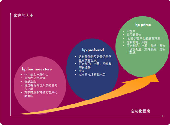 從圖中我們可以看出,對于不同類型的客戶,Business Store, HP Preferred, Hp Prime供其選擇。其中HP