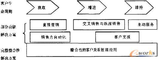 早在1984年,lves和Learmonth提出了客戶生命周期(CRLC)的概念,旨在客戶生命周期的不同階段支持并滿足客戶的所有需求,被視為CRM思想的萌芽。在20世紀90年代初。最初的CRM應用投入使用,如銷售隊伍自動化(SFA)和客戶服務與支持(css)。這些基于部門的獨立解決方案增強特定的業(yè)務流程,但卻忽略了從整體角度對企業(yè)與客戶之間關(guān)系的思考。