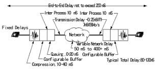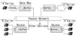 網(wǎng)關(guān)或路由器內(nèi)部的語(yǔ)音編碼器對(duì)帶內(nèi)音頻信號(hào)進(jìn)行打包和重組。這些器件對(duì)確認(rèn)接收和有效數(shù)據(jù)包接收的順序進(jìn)行糾錯(cuò)檢查。一旦發(fā)現(xiàn)錯(cuò)誤,將命令重發(fā),而重發(fā)相關(guān)數(shù)據(jù)包則不可避免地造成傳輸上的延時(shí)。網(wǎng)關(guān)或路由器上的緩存器