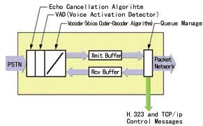 網(wǎng)關(guān)(Gate Way) 網(wǎng)關(guān)是在PSTN和分組交換網(wǎng)之間傳輸呼叫的器件,包括語(yǔ)音編碼器、回音抑制器、靜音抑制、收/發(fā)緩存器和分組交換網(wǎng)的排序管理等部分,如圖2所示。