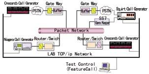 這套測(cè)試方案是建立在給VoIP網(wǎng)絡(luò)施加大話務(wù)量負(fù)載的背景下實(shí)現(xiàn)的。首先,被測(cè)系統(tǒng)必須達(dá)到預(yù)定的接通率指標(biāo);在指定的話路數(shù)和指定的話務(wù)量下,得出被測(cè)設(shè)備的延時(shí)、丟包、抖動(dòng)、沿切割指標(biāo)的平均值、最大值、最小值等綜合統(tǒng)計(jì)報(bào)告。