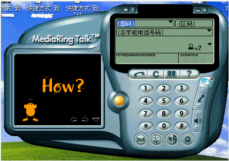 1.撥打電話:選擇所撥打電話的類型為"PC to Phone";選擇國(guó)家代碼(中國(guó)填寫86),從下拉列表中直接選擇即可;輸入城市區(qū)號(hào),通過鍵盤輸入或在"電話機(jī)"中按鍵均可;鍵入用戶號(hào)碼;點(diǎn)擊呼叫按鈕,這時(shí)彈出一個(gè)對(duì)話框,請(qǐng)您輸入Value Fone帳號(hào)和密碼,正確輸入后,MediaRing 會(huì)通過服務(wù)器查找對(duì)方是否也已登錄在服務(wù)器上,如果是,對(duì)方的 MediaRing 就會(huì)自動(dòng)響鈴,若對(duì)方接聽,雙方就可以通過 MediaRing 進(jìn)行通話。如果與對(duì)方?jīng)]有聯(lián)絡(luò)成功,可能是對(duì)方并不在線,此時(shí)MediaRing會(huì)詢問是否要斷開并聯(lián)絡(luò)對(duì)方,選擇“是”,接下來軟件會(huì)斷線并通過調(diào)制解調(diào)器直接向?qū)Ψ綋芴?hào)(相當(dāng)于通過你的電話直接撥打?qū)Ψ教?hào)碼),對(duì)方聽到一串特殊的響鈴(兩到三聲鈴聲)后便會(huì)明白有人在網(wǎng)絡(luò)上想找他了。對(duì)方應(yīng)立即聯(lián)上Internet并使用MediaRing接聽電話。