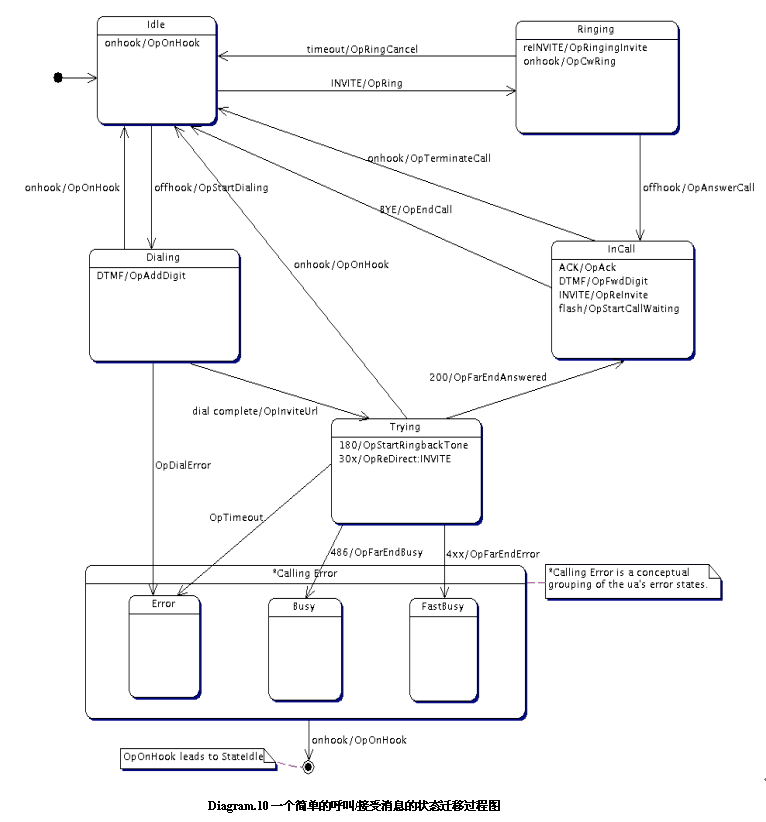 我們根據(jù)SIP協(xié)議來(lái)定義一下一個(gè)發(fā)起呼叫或者是等待接收一個(gè)呼叫的狀態(tài)遷移過(guò)程: