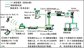 PBX,利用IP將一些遠程設備與一臺Nortel的Meridian PBX連接起來,構成語音網絡。在USCUH選擇為醫(yī)護人員配發(fā)WLAN電話時,兩個網絡合并到了一起。為保證語音質量,醫(yī)院利用SpectraLink的NetLink