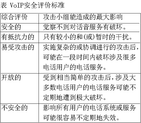測試結(jié)果表明,采用了復雜攻擊手段的攻擊小組無法破壞思科公司的VoIP網(wǎng)絡(luò),甚至無法對其造成顯著的干擾。這套精心制造的IP電話系統(tǒng)(包括第二層和第三層基礎(chǔ)設(shè)施以及各式各樣的附加安全軟件)是“安全的”(參見表中所示的VoIP安全評價標準),它最大限度地全面發(fā)揮了思科公司的網(wǎng)絡(luò)安全專長,利用了思科公司擁有的每一種防御武器。