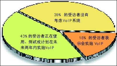 該調(diào)查收集了全球254名高級管理人員對未來企業(yè)網(wǎng)絡的意見和看法。其中,43%的受訪者表示,他們正在使用、測試或計劃在未來兩年內(nèi)實施VoIP;另外 18% 的受訪者表示,從長遠的角度來講,他們會實施 VoIP。市場預測也顯示相同的樂觀前景。研究機構(gòu)Gartner Dataquest預期到2008年,公用電話交換網(wǎng) (PSTN) 的零售語音收入將輕微下跌,而VoIP的零售收入則上升 38.6%。