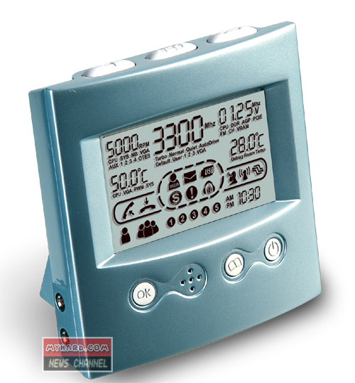 這個(gè)裝置,其實(shí)是一項(xiàng)早期工具的衍生產(chǎn)品。早在2004年,這個(gè)具有獨(dú)立顯示屏的小東西被開(kāi)發(fā)出來(lái),用以控制電腦的超頻設(shè)定并監(jiān)控系統(tǒng)的效能,F(xiàn)在這個(gè)在下周起于各大通路都買(mǎi)得到的新機(jī)種已納入Skype話務(wù)管理功能,使用者可直接把頭戴式耳機(jī)接到這個(gè)小時(shí)鐘上,one-touch輕輕一按,便可立即進(jìn)行接通電話、速簡(jiǎn)撥號(hào)及電話會(huì)議。