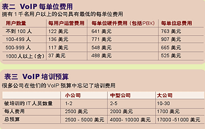 成本費用被定義為安裝用于初次VoIP部署的IP PBX、電話和網(wǎng)絡設備。