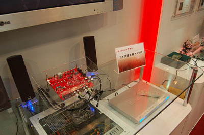 SigmaTel是給家庭影院增加了VOIP功能,如果你在聽音樂的時(shí)候想和朋友通話,你可以利用PC上的無(wú)線VOIP和數(shù)字麥克風(fēng)輕松實(shí)現(xiàn)交流。SigmaTel的STAC9271、9272、9273等系列產(chǎn)品是10聲道音頻編解碼器,可以實(shí)現(xiàn)帶同步VOIP或立體聲7.1音頻系統(tǒng)。利用SigmaTel的knowles麥克風(fēng)波束成型、回聲消除和噪聲抑制技術(shù),可以獲得清晰的VOIP通話質(zhì)量。SigmaTel亞洲區(qū)軟件開發(fā)經(jīng)理辛志華表示,這方面的開發(fā)難點(diǎn)是軟件部分,不SigmaTel可以提供全套的軟件幫助客戶快速開發(fā)出產(chǎn)品。
