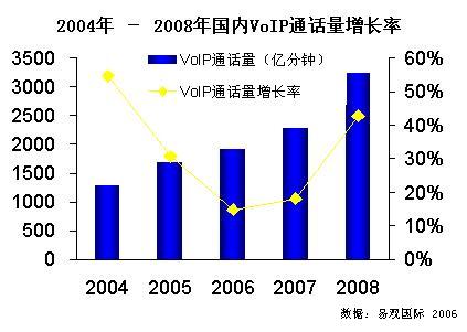 新華美消息:易觀國際《中國 VOIP 市場監(jiān)管政策趨勢預(yù)測專題報(bào)告2006》中指出,VoIP 是大勢所趨,政策壓制的原因是開放的條件不成熟。一切政策的制定都要遵從一個大前提,即保障公開競爭、維護(hù)國家和用戶利益、防止重復(fù)建設(shè)。2004年-2008年國內(nèi) VoIP 通話量增長率圖下載: