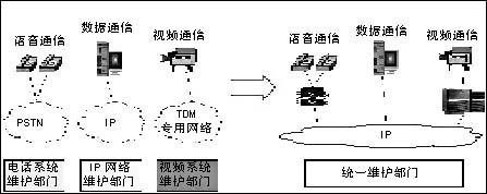 數(shù)據(jù)、語音和視頻是三種主要通信手段。與數(shù)據(jù)通信網絡和視頻通信系統(tǒng)的發(fā)展趨勢一脈相承,VoIP建設是對傳統(tǒng)語音通信系統(tǒng)的IP化改造。