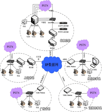 北京正有公司為企業(yè)專門設(shè)計了一套interPBX解決方案,利用企業(yè)自有的數(shù)據(jù)網(wǎng)構(gòu)建覆蓋整個企業(yè)的VPTN網(wǎng)絡(luò)電話系統(tǒng),該套系統(tǒng)具備與傳統(tǒng)PSTN電話網(wǎng)絡(luò)實現(xiàn)無縫連接的能力,在不影響工作效率的前提下達(dá)到降低通話費用的目的,同時可以完成企業(yè)所需要的其它增值服務(wù)功能,如電話會議、呼叫中心等。