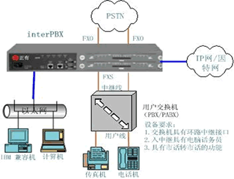 interPBX與用戶交換機PBX連接方式一: