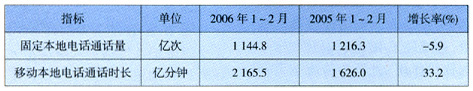 圖1 2006年1-2月的電信業(yè)務(wù)收入構(gòu)成
