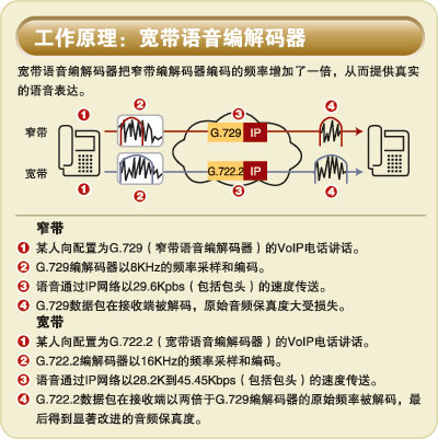 典型的人類語(yǔ)音盡管由范圍很寬的頻率組成,但利用10KHz以上的頻率采樣就能很好地復(fù)制。不幸的是,大多數(shù)VoIP的編解碼器也只能捕獲這個(gè)頻譜范圍的一半。G.729語(yǔ)音編解碼器是VoIP系統(tǒng)中應(yīng)用最廣的編解碼器,它是采樣頻率范圍從200Hz至略小于4KHz的窄頻編解碼器。因此,典型人類語(yǔ)音的大部分頻譜沒有被采集到。