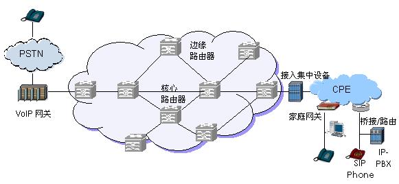 圖1 VoIP承載網(wǎng)絡體系架構(gòu)示意圖