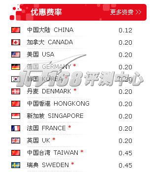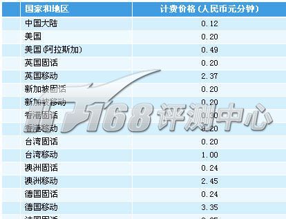 國內長途0.10元/分鐘,國際長途都不相同,從官方列表上看,支持的國家不是很多。軟件支持網(wǎng)絡銀行在線充值和銀行普通匯款兩種充值方式。