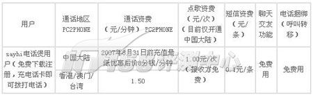 VoIP的重點是在于語音質量、通話費用上,從測試結果來看,基本上各個軟件都能得到較好的通話質量,個人感覺質量最好的是Skype。在通話費用方面,酷寶、RedVip、SayHi和UUCall的費用一樣,都是0.12元/分鐘,但SayHi和UUCall通過優(yōu)惠措施把價格降得很低,非常的實惠。