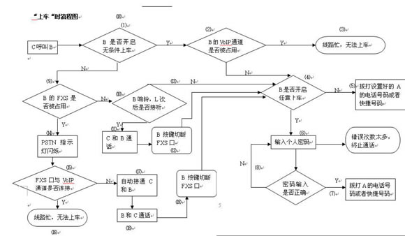 - 若C是為了上車,則B端接聽方按鍵“*#*”切斷FXS通路,進(jìn)入⑷--⑻