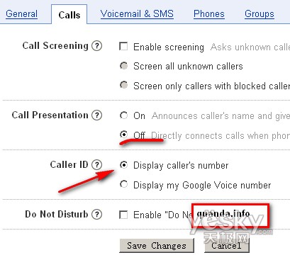 也許很多朋友嘗試不成功,原因是還需要在Google voice中設定 Display caller’s number.因為28tel需要在電話呼入的時候識別來電顯示的。