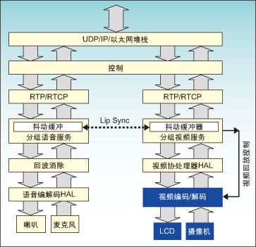 IP語(yǔ)音通話需要一些功能和處理的融合。此外,對(duì)于用戶接口和應(yīng)用層來(lái)說(shuō),這些處理包括通話控制、語(yǔ)音編解碼、回波消除和抖動(dòng)緩沖。IP可視通話又增加了一些額外的要求,主要包括視頻編/解碼,色彩顯示緩沖和管理以及語(yǔ)音/視頻(A/V)流同步。其結(jié)果是需要一個(gè)復(fù)雜的和協(xié)調(diào)的組合功能,包括大量的控制功能,還有原始數(shù)據(jù)處理以及復(fù)雜的功率管理方法。適合于某種處理應(yīng)用的最佳架構(gòu)未必就是另一種應(yīng)用的最佳,于是迫使設(shè)計(jì)師必須采取一些系統(tǒng)折衷。