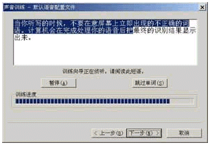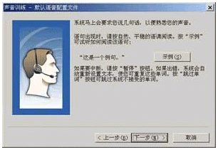 點(diǎn)擊"下一步"按鈕后,就會(huì)看到如圖11所示的對(duì)話框,請(qǐng)根據(jù)窗口中的提示對(duì)話信息朗讀,如果朗讀正確,對(duì)話信息將會(huì)反白顯示,如果你朗讀錯(cuò)誤,請(qǐng)重新進(jìn)行。