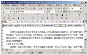 在安裝了語音識(shí)別功能后,如果你設(shè)置顯示語言欄,那么你將會(huì)在Office程序中看到如圖14所示的麥克風(fēng)圖標(biāo)(如果未看到,請(qǐng)從"工具"菜單中選中"語音"項(xiàng)),工作時(shí)將在"聽寫"和"聲音命令"模式之間進(jìn)行切換。