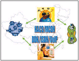 在各分呼叫中心之間,通過(guò)DDN數(shù)據(jù)專線或其他形式的傳輸網(wǎng)絡(luò)實(shí)現(xiàn)用戶信息及其交易數(shù)據(jù)在呼叫中心之間的傳輸,IP語(yǔ)音數(shù)據(jù)也通過(guò)租用的DDN專線傳送。各呼叫中心通過(guò)SS7或ISDN的信令鏈路判斷轉(zhuǎn)接話務(wù)員分機(jī)的閑忙,將電話在呼叫中心節(jié)點(diǎn)之間進(jìn)行轉(zhuǎn)接。