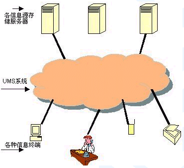 統(tǒng)一消息業(yè)務(Unified Messaging Service,以下簡稱UMS) 將所有的消息類型,包括語音、電子郵件、傳真、數(shù)據(jù)以及將來的視頻信息等全部放入一個接收盒中。用戶可以在任何地點通過任意一種終端,比如固定電話、移動電話、PDA、PC甚至加了機頂盒的電視機來訪問收發(fā)盒中的任何消息。UMS可以在不同媒體之間進行轉(zhuǎn)換,比如從文本轉(zhuǎn)換成語音(Text