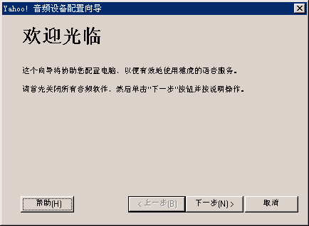 選擇幫助->音頻設(shè)備配置向?qū)?圖2),會彈出“音頻設(shè)備配置向?qū)А贝翱?圖3),這個向?qū)䦷椭銓P(yáng)聲器、麥克風(fēng)、回音、網(wǎng)絡(luò)連接等項(xiàng)目進(jìn)行標(biāo)準(zhǔn)的測試和設(shè)置。